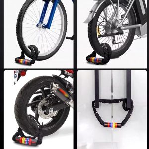 This heavy-duty lock delivers enhanced security for bikes/motorcycles with a robust anti-theft design, keeping your vehicle safe in public areas. Crafted from high-quality alloy, it’s corrosion-resistant, weatherproof, and durable for outdoor use. The chain comes with a protective fabric cover (prevents rust/scratches) and a dust shield (protects keyhole from rain/dust). Ultra-easy to use—install or remove in seconds with a simple lever-activated mechanism.