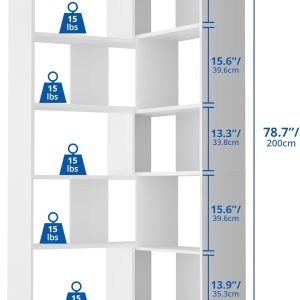 Corner Bookshelf Standing 5 Tiers Display Storage Shelves 78 in Tall Bookcase Home Modern L-Shaped Design Furniture for Home Office, Living Room, Bed Room