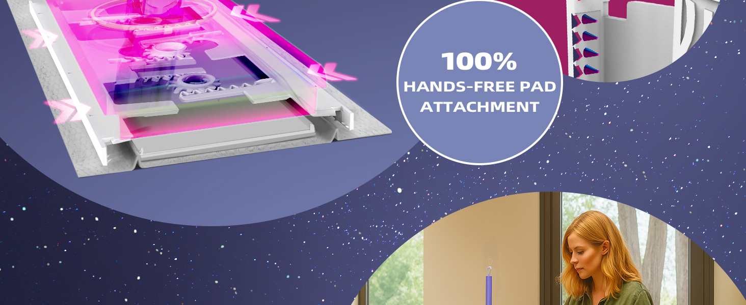 - Touch-free Cloth Attachment & Removal: Instantly attach & remove cloths in one second without touching the dirty cloth, saving time and ensuring hygiene