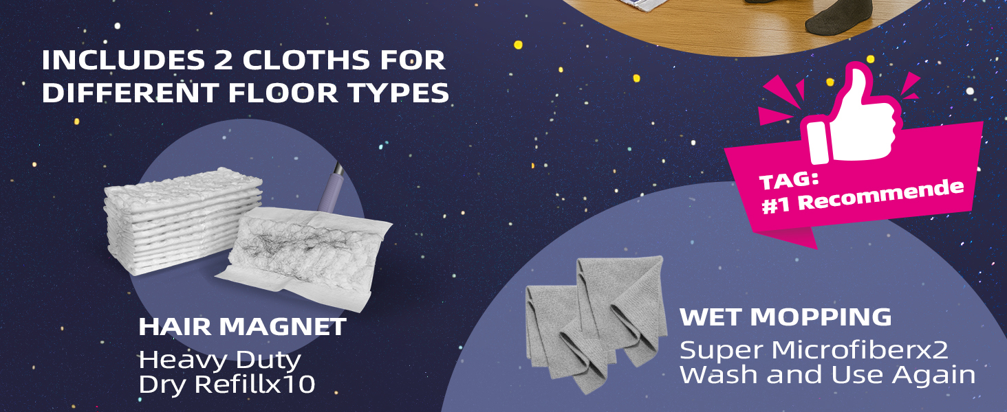 - Hold Cleaning Pad Tightly: The shark-tooth grips firmly hold various cleaning pads. Use dry towels for dust and hair removal, old rags for mopping, or Swiffer cloths for both dry and wet cleaning