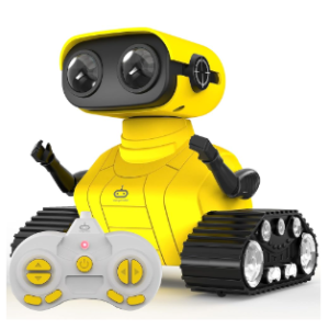 - Fantastic Appearance: This cute and funny robot is design in 2 part. The upper part is a cute robot with a pair of LED eyes and the gesture can be adjusted.The bottom part is a pair of tank tracks. Besides, we adopt a exquisite packaging for this robot. It will be a great birthday or Christmas gift for your kids. Robot Size:4.9*3.4*4.7 inches.