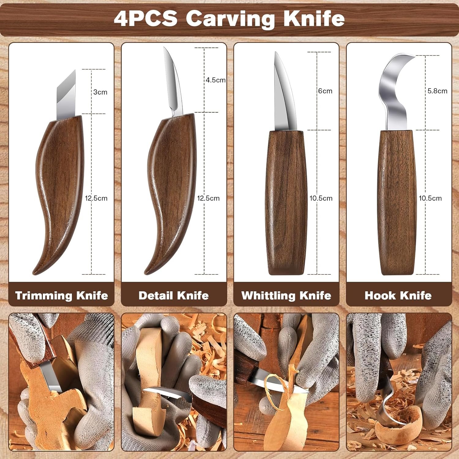 - 【Perfect Gift For Craftsmen】——This wood whittling kit provides everything you need to unleash your creativity, perfect for beginners and experienced woodworkers.