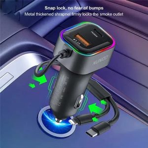 [4-in-1 Charging Solution] Say goodbye to messy cables. This car charger features 2 retractable cables (1 Type-C & 1 Lightning) and 2 additional ports (1 USB-A & 1 USB-C), allowing you to charge up to 4 devices simultaneously. Perfect for family trips or Uber/Lyft drivers.