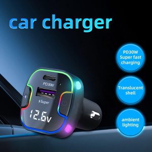 Bluetooth 5.3 Car FM Transmitter, PD 30W & QC 3.0 Fast Car Charger, with 12.6V Voltage Display, RGB Backlit, Hands-Free Calling, Support USB Drive Music Player