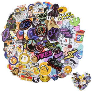 [Massive 203Pcs Variety] Get a huge collection of 203 unique, non-repeating stickers featuring popular culture, internet memes, animals, and cool geometric designs.