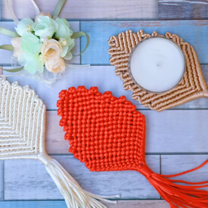 [Clearance Sale] 3-Pack Handmade Macrame Coasters Set, Boho Woven Cup Mats & Wall Decor, Colorful Star & Leaf Pattern for Home & Coffee Bar