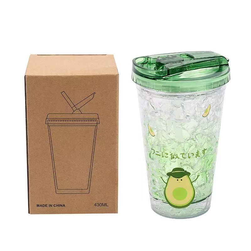 [Clearance Sale] 430ML Double Wall Gel Freezer Mug with Straw, Insulated Iced Coffee Tumbler, Avocado Green Cooling Cup for Summer Smoothies & Juice