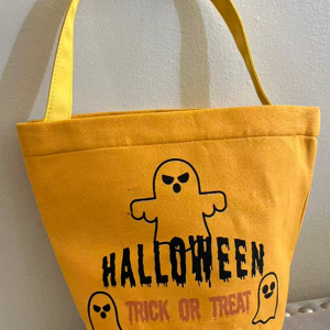 [Classic Halloween Characters] Features two adorable and spooky designs: a vibrant yellow bag with “Trick or Treat” ghosts and a cool black bag with devil horns and bat wings.