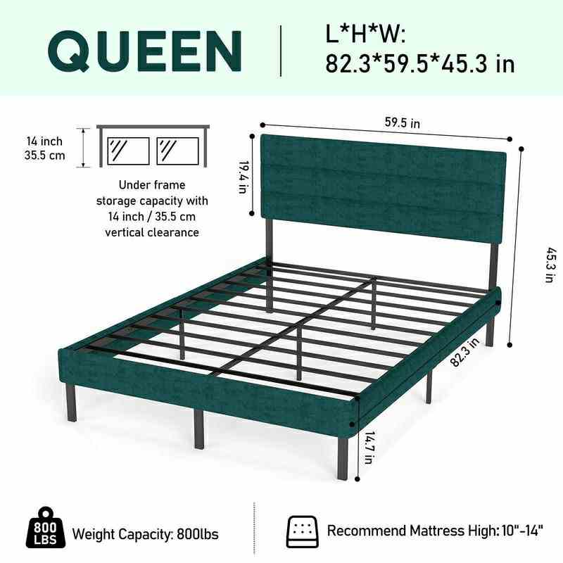 - [Safer & More Stable]Our modern bed frame is composed of Pine Wood+MDF board and large load-bearing slats, which provide unparalleled stability. The powerful Velcro strip and the silent bar are designed for reducing friction while eliminating strange squeaking noise to bring you a quiet sleep.?[Dimensions] Overall Product Dimension:78”L x 56.2”W x 45”H.Mattress not included.Some simple assembly is required, clear and detailed instructions and all necessary tools are provided.Platform bed needs easy assemble with clear instructions and tools included,any problem please feel free to contact us.